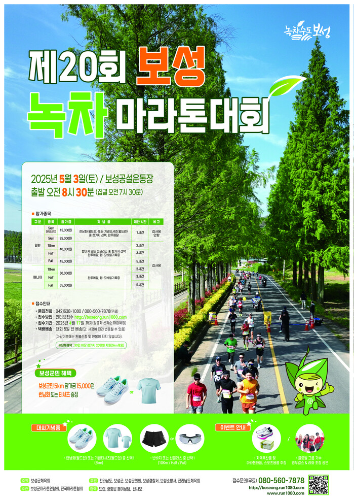 올해로 20주년을 맞는 보성녹차마라톤대회는 보성군체육회가 주최하고, 보성군마라톤연합회 및 전국마라톤협회가 주관한다.