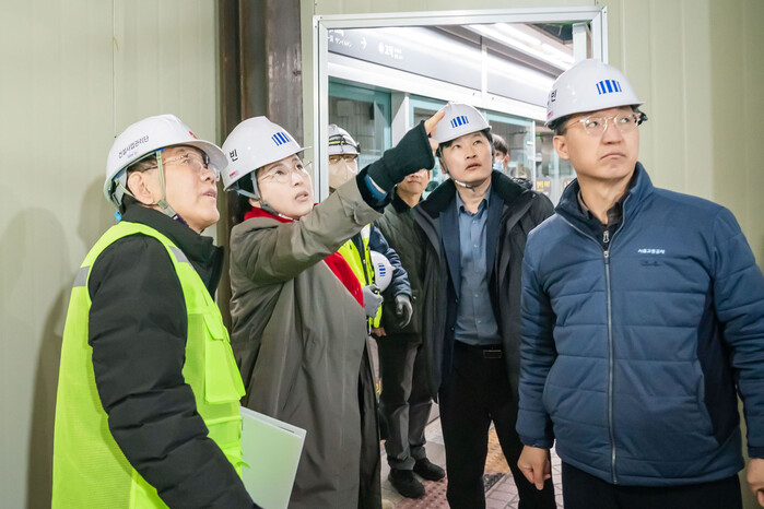 | ▲ 2024년 3월 12일, 5호선 상일동역 현장을 방문한 이수희 강동구청장 (사진=강동구청 제공) |
