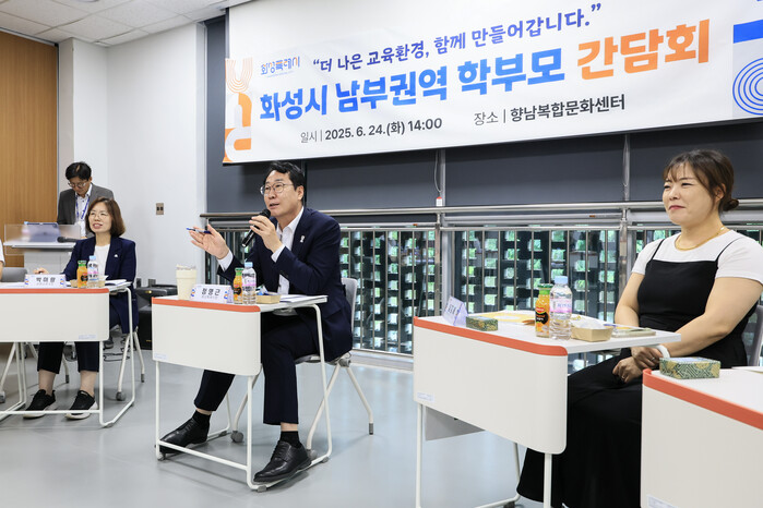 [화성=송윤근 기자] 경기 화성시가 24일 향남복합문화센터에서 향남ㆍ팔탄ㆍ우정ㆍ장안ㆍ양감ㆍ정남 등 남부권역 학부모 간담회를 개최했다.