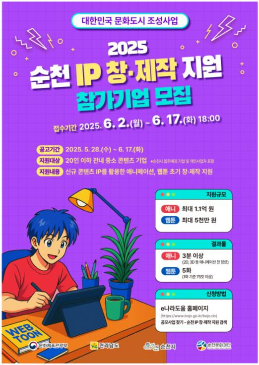 1차 기획안 평가를 통해 애니메이션 10개 과제, 웹툰 15개 과제를 선정해 각 3000만원, 1000만원을 지원하며, 2차 최종 결과물 평가를 통해 애니메이션, 웹툰 분야별 3개 우수작품을 최종 선정해 각 8000만원, 4000만원을 시상할 계획이다.