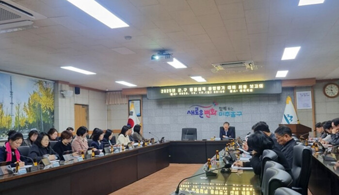 [인천=문찬식 기자] 인천 미추홀구(구청장 이영훈)는 12일 구청 중회의실에서 부구청장 주재로 ‘2025년 군·구 행정 실적 종합 평가 대비 최종 보고회’를 개최했다.