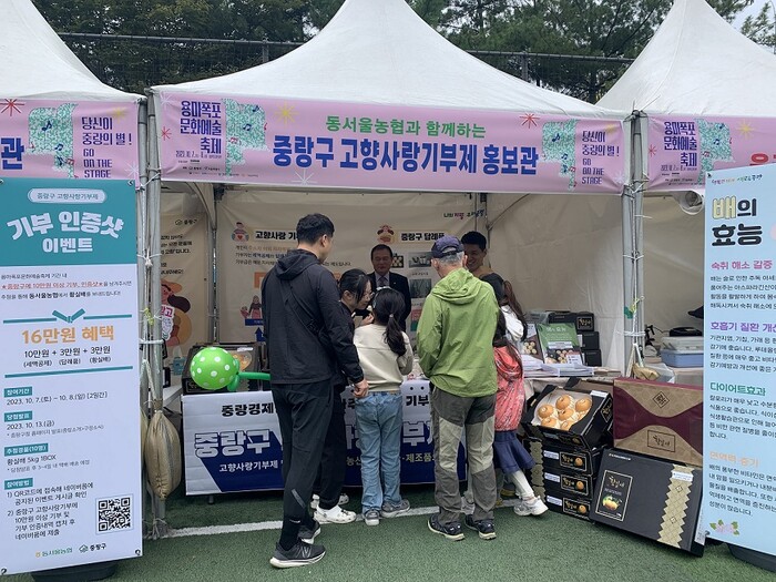 | ▲ 2023 용마폭포문화축제에 설치된 중랑구 고향사랑기부제 홍보관 (사진= 중랑구청 제공) |