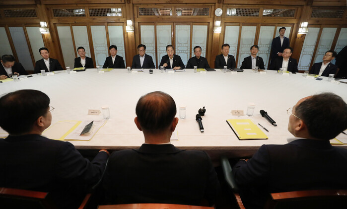 이날 협의회에는 황우여 비상대책위원장과 추경호 원내대표, 정점식 정책위의장, 성일종 사무총장, 배준영 원내수석부대표 등 당 인사를 비롯해 한덕수 국무총리와 최상목 경제부총리, 이상민 행정안전ㆍ안덕근 산업통상자원ㆍ조규홍 보건복지ㆍ이정식 고용노동ㆍ오영주 중소벤처기업부 장관, 김주현 금융위원장 등 정부측 인사가 자리를 함께 했다.