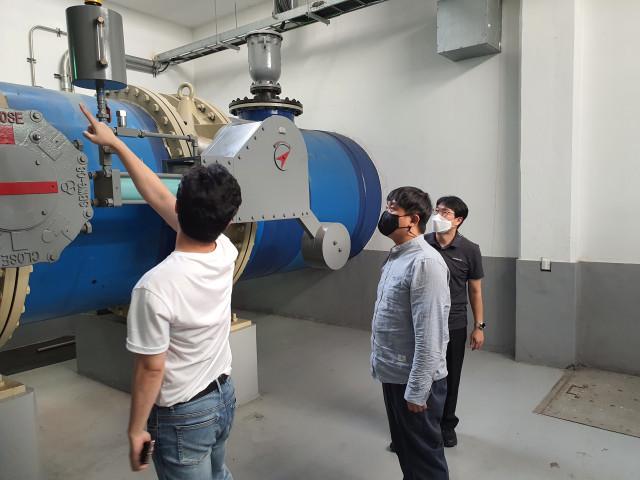 | ▲ 관게자들이 침수 피해를 예방하기 위해 빗물펌프장 안전 점검을 실시하고 있다 (사진제공=동작구청) |