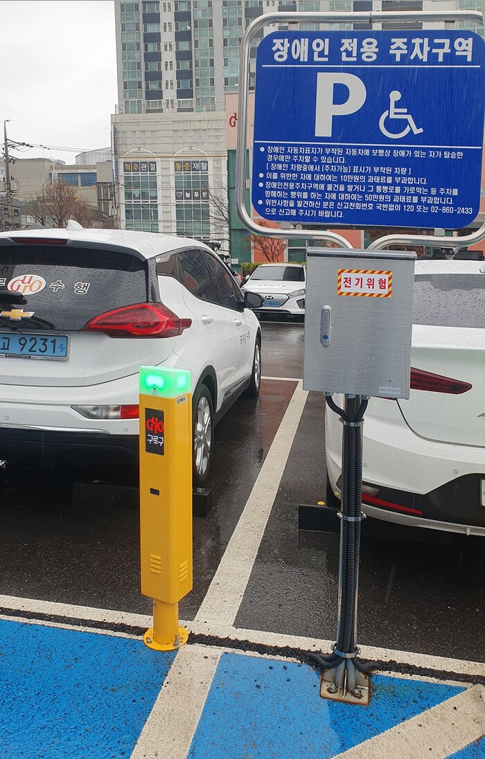 | ▲ 구로구청 부설주차장에 설치된 장애인전용주차구역 사물인터넷 주차관리시스템 모습 (사진=구로구청 제공) |