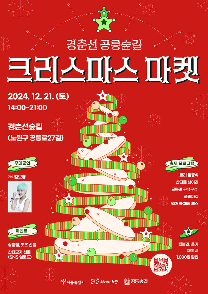 [시민일보 = 박소진 기자] 노원구(구청장 오승록)가 오는 21일 겨울철 상권 활성화를 위한 특별 행사로 ‘경춘선 공릉숲길 크리스마스 마켓’을 개최한다고 밝혔다.