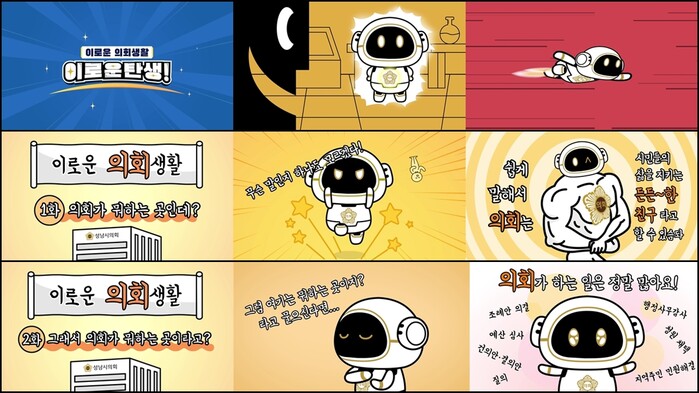 프롤로그에 해당하는 ‘이로운 탄생’편에서는 애니메이션 ‘파워퍼프걸’을 패러디하여 성남시의회 SNS 캐릭터‘이로운’의 탄생비화를 다룬다. 1편과 2편에서는 ‘이로운’이 의회의 역할과 기능을 쉽고 재미있게 설명한다.