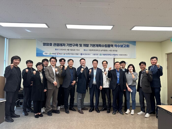 이날 착수보고회에는 영암군, 해남군, 전남도, 목포대학교와 MC에너지, 서남해안기업도시개발 등 SPC 관계자 등이 참석해 전남 서남 해안권 복합관광 거점 육성 방안을 논의했다.
