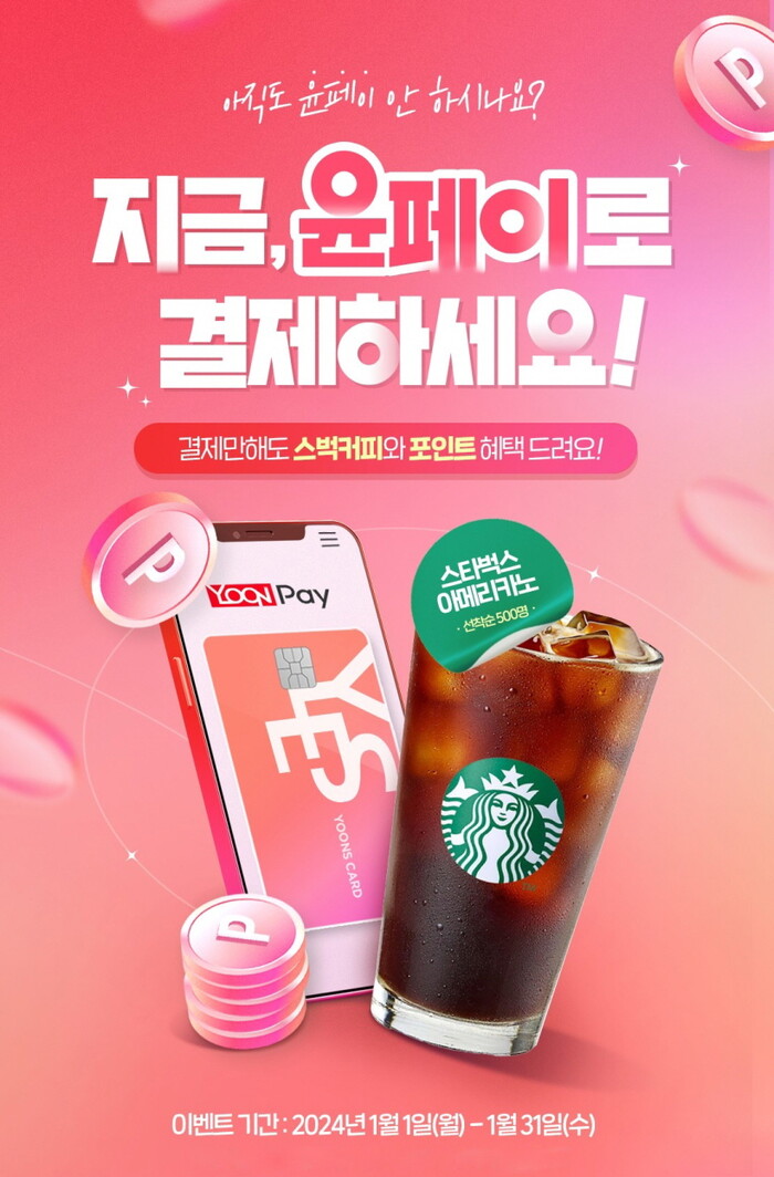또한, 기간 내 윤페이로 첫 결제하는 500명에게는 스타벅스 아이스 아메리카노 기프티콘을 증정할 예정이다. 이번 이벤트는 윤선생베이직 기존 및 신규 회원 모두 참여 가능하며, 자세한 내용은 윤선생베이직 홈페이지에서 확인하면 된다.