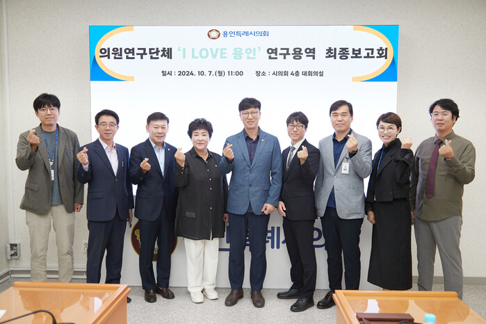 | ▲ 용인특례시의회 의원연구단체 I LOVE 용인, 연구용역 최종보고회 개최 |