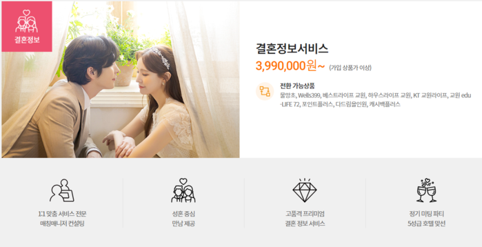 해당 서비스는 전문직, 대기업 등 다양한 직군에 종사하는 남녀를 자연스럽게 만날 수 있고 형식적인 1:1 만남이 아닌 5성급 호텔에서 전문 MC와 만찬을 곁들인 고품격 미팅 서비스를 누릴 수 있다. 특히 그동안 기 납부한 납입금을 활용해 교원라이프 특별 할인 금액으로 이용 가능하며 확실한 서류 인증 절차를 통해 안전한 만남이 가능해 신뢰감을 갖고 소중한 인연을 찾을 수 있다.