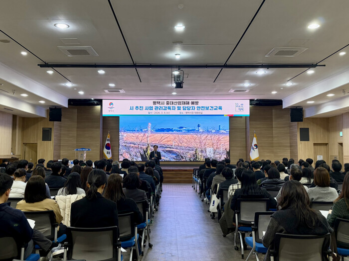 [평택=오왕석 기자] 평택시(시장 정장선)는 지난 4일 시청 대회의실에서 시 소속 사업장 및 도급사업의 안전관리 수준을 높이고 중대산업재해 예방을 위해 ‘중대산업재해 예방 역량 강화를 위한 안전‧보건 교육’을 실시했다.