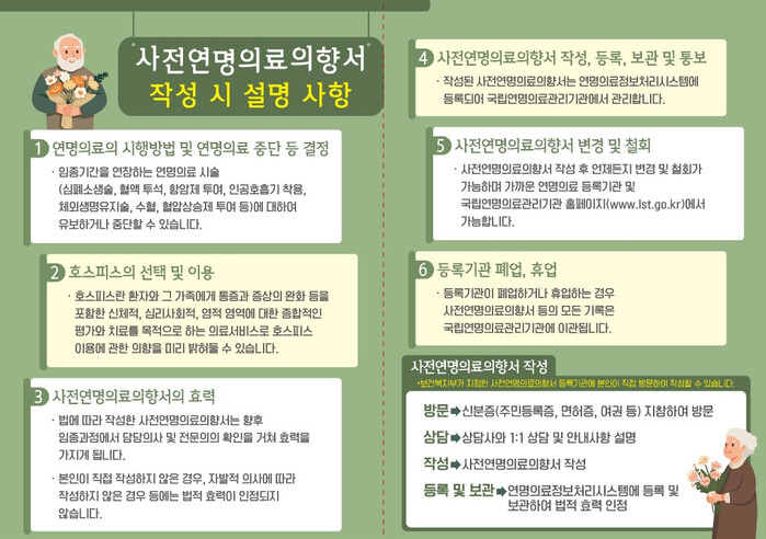 19세 이상 성인이라면 누구나 사전연명의료의향서를 통해 연명의료 중단에 관한 본인 의사를 사전에 문서로 남길 수 있다.