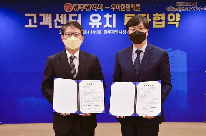 송권춘 시 일자리정책관은 “2년 넘게 장기화된 코로나19로 인해 힘든 시기에 이번 ㈜우아한형제들 고객센터 투자유치가 지역경제 활성화에 기여할 것으로 예상한다”며 “앞으로도 고객센터 운영에 매력적인 도시인 광주를 적극 홍보해 더 많은 고객센터를 유치하고 일자리가 창출되도록 노력하겠다.”고 말했다.