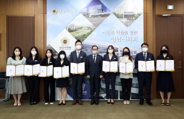 [성남=오왕석 기자] 성남시의회(의장 윤창근)에서는 6월 30일 의회의 정책역량 강화를 위해 지방의회의원의 의정활동을 지원하는 정책지원관 8명에 대한 임용장을 수여하였다.