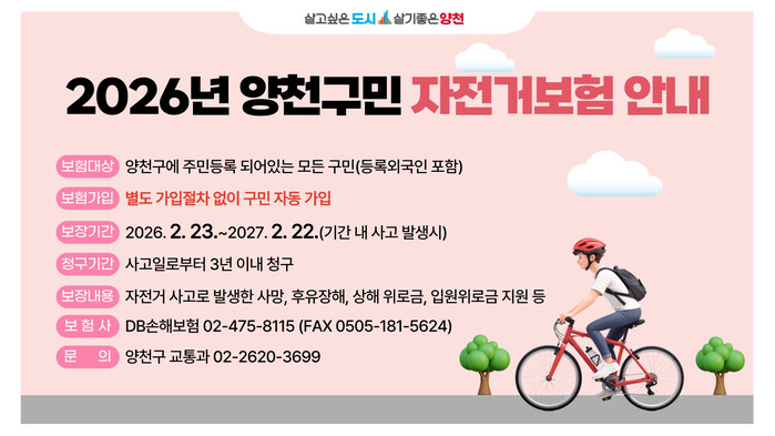 | ▲ ‘2026년 구민 자전거보험’ 운영 안내문. (사진=양천구청 제공) |