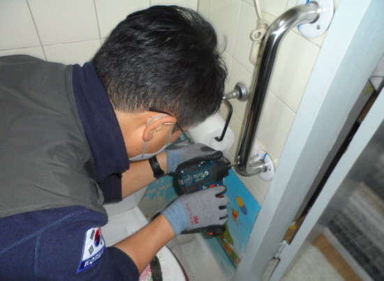 | 부천도시공사 직원이 주거 취약계층의 화장실 환경을 개선하고 있다. (사진=부천도시공사) |