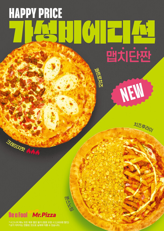 이번 신제품은 시그니처 피자 2종 ‘크레이지핫’과 ‘콰트로치즈’, 클래식 피자 2종 ‘콘스노잉’과 ‘치즈후라이’, 그리고 사이드 메뉴 ‘크림치즈바게트’로 구성됐다.