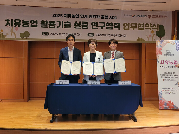 이번 협약은 의료기관 연계 치유농업 활용 기술의 실증 연구와 암환자 맞춤형 돌봄서비스 제공, 치유농업 활성화를 통한 지역사회 건강 증진을 목표로 한다.