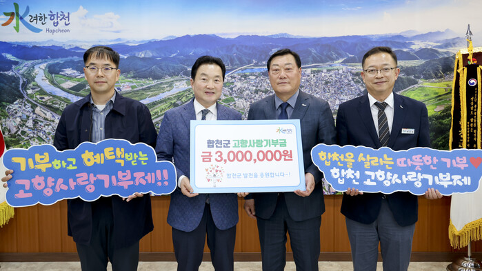 지현철 대표이사는 “고향사랑기부제 참여로 고향인 합천군 발전에 도움이 된 것 같아 기쁘다”며 “다른 출향인분들도 합천군 고향사랑기부제에 많이 관심을 갖고 동참하여 고향사랑을 이어나가기를 바란다”고 말했다.