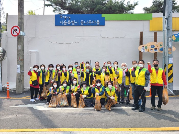 은평구 응암1동은 지난 18일 꿈나무 마을 담장과 인근 지역을 중심으로 ‘클린데이 행사’를 실시해 아파트 정문 이면도로 등 인근 지역의 담배꽁초를 집중적으로 수거했다. 사진은 이날 참여한 봉사자들이 기념촬영을 하는 모습. (사진제공=은평구청)