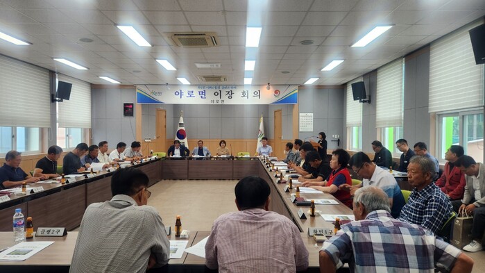 이번 이장회의는 새로 부임한 박필숙 야로면장의 인사를 시작으로 인구 증가 인센티브 안내, 한우 FTA 피해 보전 직불사업 신청 안내, 폭염 및 장마철 대비 안전관리 철저 등을 안내하고 당면현안을 보고하였다.