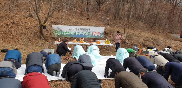 이날 재구봉산향우회는 봉두산에서 산신령께 3배(산 사람에게는 1배, 조상님께는 2배, 신령님께는 3배)를 올리고, 봉산면민들의 건강과 행복을 기원하는 뜻 깊은 시간을 가졌다.