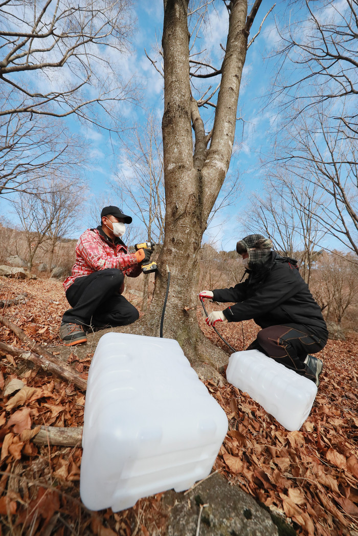 청정 함양군에서 새해 첫 지리산 고로쇠 수액 채취가 시작되었다.