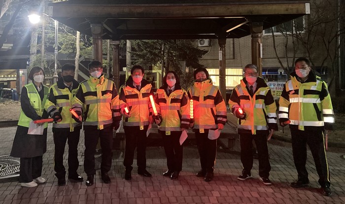 경기 수원시 영통구는 최근 임광아파트 뒤 주택가 일원에 대해 민·관 합동 순찰을 실시했다. 구는 지난 ‘2022년 구청장 동 방문 열린대화’에서 나온 주택가 방범순찰 강화 요청에 따라 임광아파트 뒤 주택가 일원을 대상지역으로 선정해 합동순찰을 추진했다. 사진은 이날 민·관 합동 순찰대가 기념촬영을 하는 모습.(사진제공=수원시청)