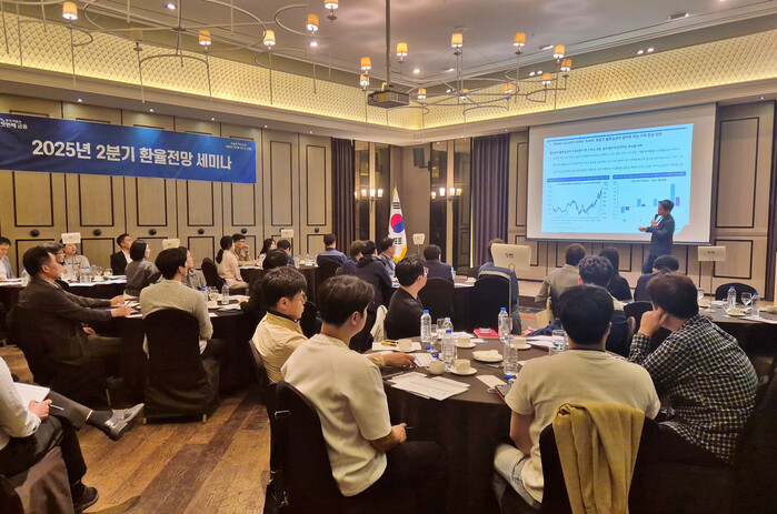 [시민일보 = 박소진 기자] 우리은행이 지난 14일 경남지역 수출입기업 임직원을 초청해 ‘2025년 2분기 환율전망 세미나’를 개최했다.