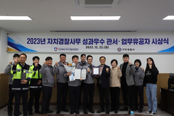 [구미=박병상 기자] 경북 구미경찰서(서장 장종근)는 경상북도자치경찰위원회가 평가한 ‘2023년 자치경찰사무 성과평가’에서 1급지 성과 우수관서로 선정, 지난 22일 구미경찰서 4층 회의실에서 성과우수 관서 . 업무유공자에 대한 시상식을 가졌다.