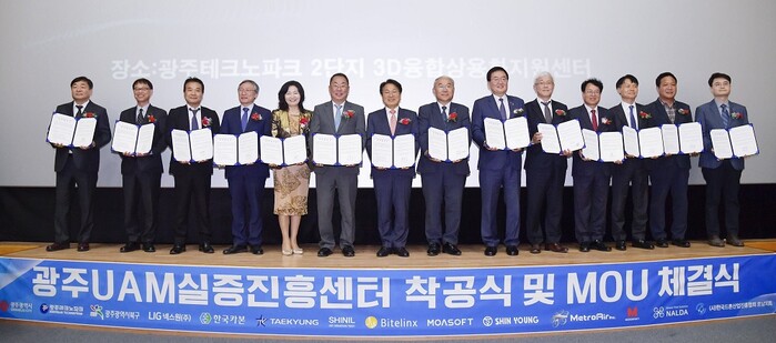 광주시는 착공식에서 북구, 광주테크노파크, LIG넥스원㈜, ㈜한국카본, 태경전자㈜, 신일정보기술㈜, ㈜비텔링스, ㈜모아소프트, ㈜신영, ㈜메트로에어, ㈜마이크로인피니티, ㈜날다, ㈔한국드론산업진흥협회 호남지회 등 13개 기관과 UAM산업 진흥을 위한 업무협약을 체결했다. 또 UAM실증진흥센터의 안전한 건립을 위한 안전결의대회를 가졌다.