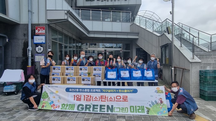 경기 양주시 회천2동 지역사회보장협의체는 지난 14일 초복을 맞아 지역내 홀몸노인과 취약계층 214가구에 삼계탕과 떡을 전달하는 '토닭토닭 삼계탕' 지원 행사를 진행했다. 삼계탕과 떡은 각각 금복당과 지장사의 후원으로 마련됐으며, 재활용품 활용 아이스팩 방향제와 반려식물도 전달했다. 사진은 전달식에서 관계자들이 기념촬영을 하는 모습.(사진제공=양주시청)