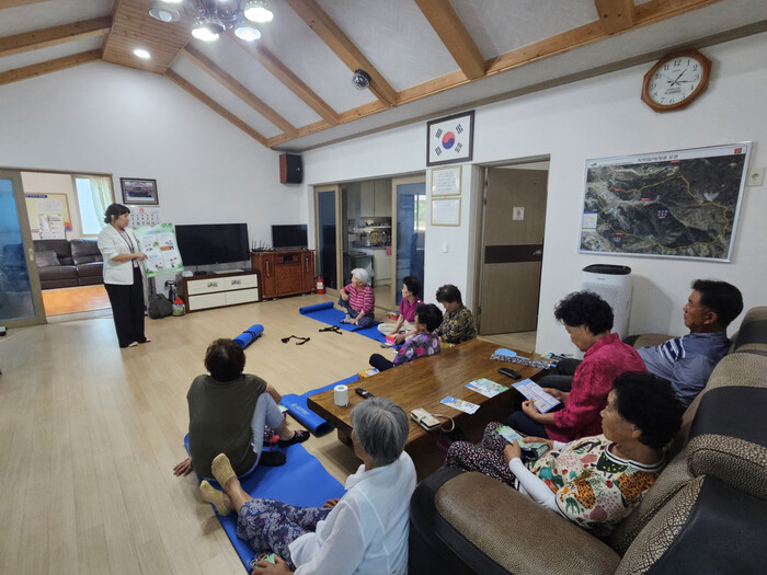 보건소는 6월부터 지역내 경로당과 마을회관을 순회하며 노인 눈높이에 맞춘 폭염 대비 건강수칙 교육을 실시하고 있다.