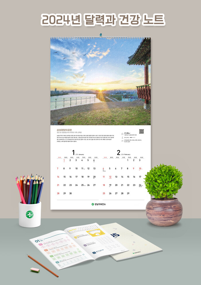 [시민일보 = 이대우 기자] 서울 강남구(구청장 조성명)가 2024년 갑진년(甲辰年) 새해를 맞아 일상에서 건강관리를 실천할 수 있도록 강남의 나들이·운동 명소가 수록된 새해 달력과 365일 건강관리를 기록할 수 있는 노트 1,000부를 제작하고 오는 11월 7일부터 배포한다.