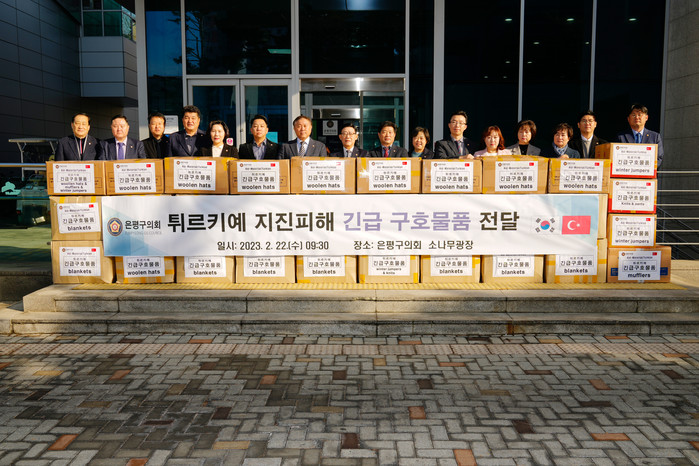 [시민일보 = 이대우 기자] 서울 은평구의회(의장 기노만)가 최근 은평구의회 1층에서 대지진 피해로 고통받고 있는 튀르키예 이재민들을 위해 구호 물품을 튀르키예 주한대사관이 지정한 물류센터로 전달했다.