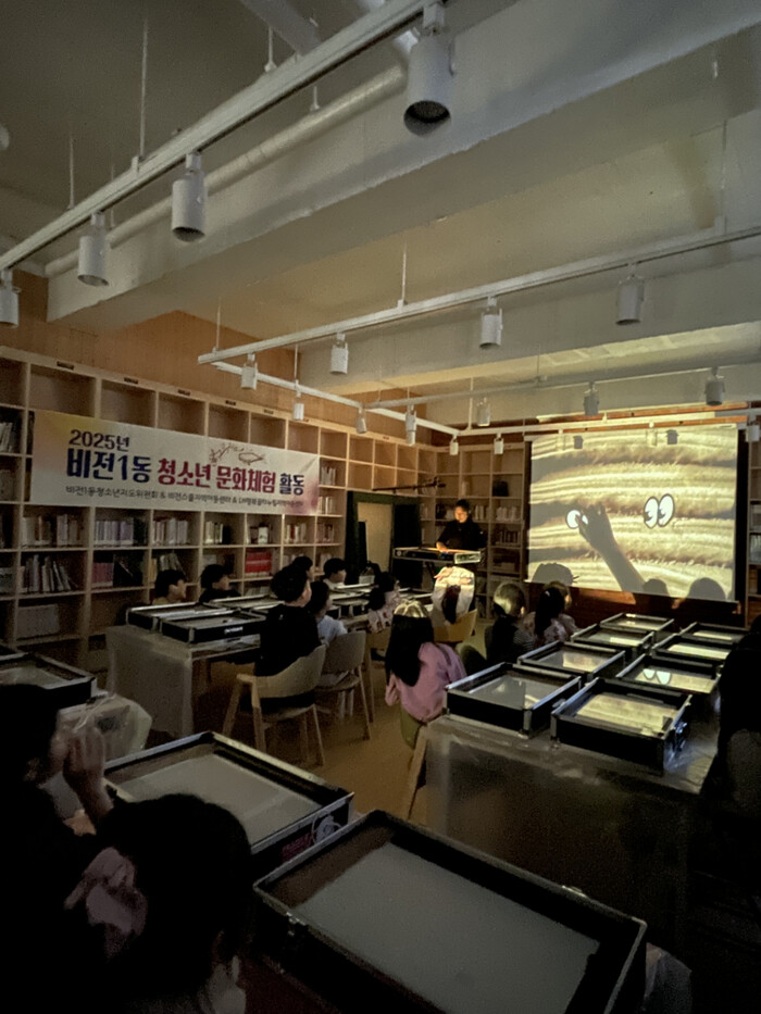 [평택=오왕석 기자] 평택시 비전1동 청소년지도위원회(위원장 박상운)는 지난 2일부터 3일까지 이틀간 관내 지역아동센터 2곳에서 ‘2025 청소년 문화 체험 샌드아트 공연 및 체험 행사’를 성황리에 개최했다.
