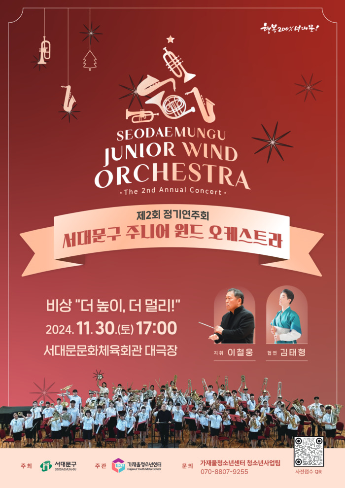 [시민일보 = 이대우 기자] 서대문구(구청장 이성헌)가 가재울청소년센터와 함께 오는 30일 오후 5시 서대문문화체육회관 대극장에서 ‘서대문구 주니어 윈드 오케스트라’ 제2회 정기연주회를 개최한다.