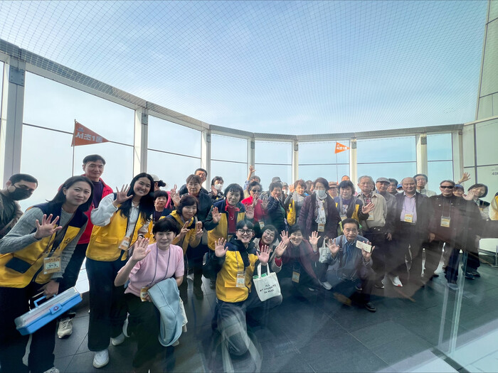 | ▲ 가을동행 행사에 참여한 노인들이 서울 롯데타워 서울스카이를 관람하고 기념 촬영을 하고 있다. (사진=서초구청 제공) |