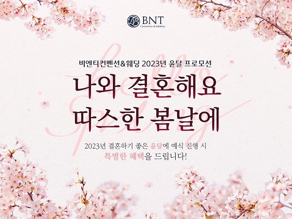 해당 프로모션은 2023년 3월 22일 ~ 4월 19일(윤달)에 비엔티컨벤션&웨딩에서 예식을 진행하는예비 신랑신부를 대상으로 다양한 혜택을 제공한다. 제공되는 혜택은 시크릿 혜택으로 예식 상담 시 확인해볼 수 있다.