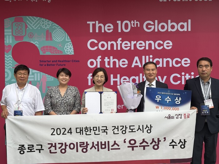 [시민일보 = 이대우 기자] 종로구(구청장 정문헌)가 건강이랑서비스를 통해 ‘2024 대한민국 건강도시상’ 일반정책 부문에서 우수상 수상의 영예를 안았다.