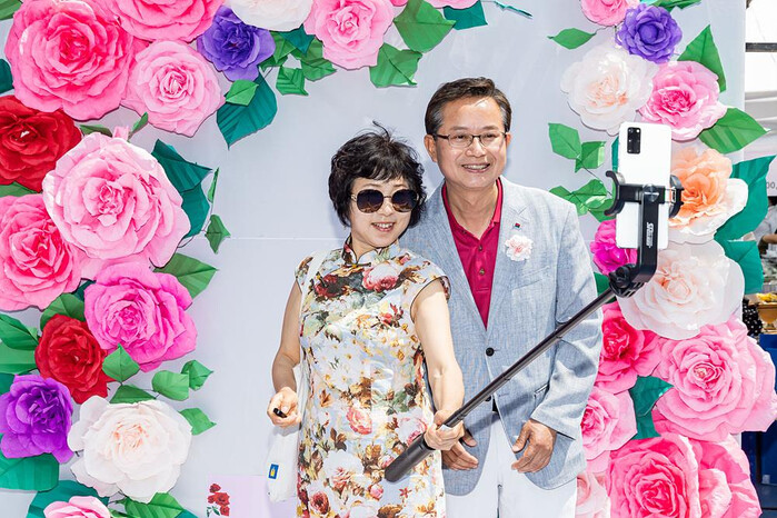 | ▲ 지난해 도림동 장미마을 축제에서 구민과 기념사진을 찍고 있는 최호권 구청장(오른쪽). (사진=영등포구청 제공) |