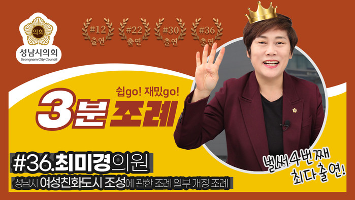 [성남=오왕석 기자] 성남시의회(의장 윤창근)는 15일 ‘성남시의회 3분 조례’ 서른여섯 번째 영상을 SNS에 게시했다.