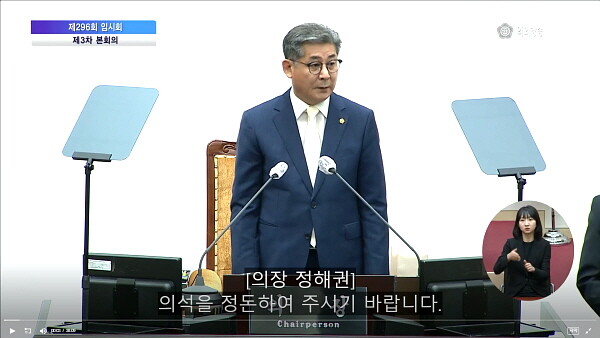 정해권 의장은 “현재 제공 중인 영상 자막은 2014년도 제7대 의회 ‘제216회 임시회’부터 2024년도 제9대 의회 후반기 ‘제296회 임시회’까지 총 2천877건의 서비스를 제공하고 있다”며 “앞으로도 신속·정확한 회의록 작성과 안정적인 자막서비스 제공을 위해 최선을 다하겠다”고 말했다.