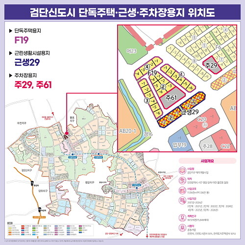 현재 공고중인 단독주택용지(F19)는 ▲2년 분납 ▲할부이자 무이자 공급조건이며, 21일 공고예정인 근린생활용지(근생29)·주차장용지(주29·주61)는 ▲3년 분납 ▲할부이자 유이자(연 3.5%) 조건이다.