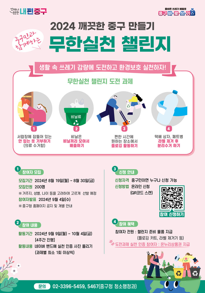 [시민일보 = 여영준 기자] 서울 중구(구청장 김길성)가 구민들과 함께하는 쓰레기 감량 프로젝트 ‘무한실천 챌린지’를 진행한다.