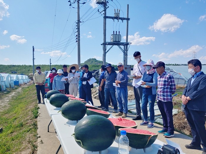 한편, 함안군은 매년 새로운 소득품종 육성과 시설원예 신기술 조기도입 및 확산을 위해 수박시험사업을 추진하고 있다.