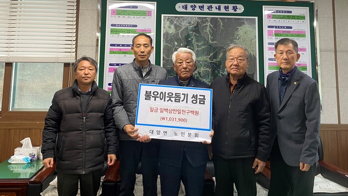 심경섭 노인분회장은 “대양면 28개 경로당의 회원분들께서 각 마을에서 발생한 빈 병을 수집해 모은 금액을 소외된 이웃들이 따뜻한 겨울을 날 수 있도록 한마음 한뜻으로 기부하게 됐다”고 말했다.