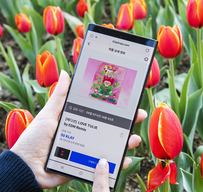 이번 튤립 NFT는 각 작품별 30개씩 총 330개가 한정판으로 클립드롭스에서 발행되며, 개당 50~70클레이(KLAY) 확정가로 선착순 판매된다. 클레이는 그라운드엑스에서 개발한 블록체인 플랫폼 클레이튼 기반의 암호화폐로, 29일 오전 8시 빗썸 거래소 기준 1클레이는 1,475원이다.