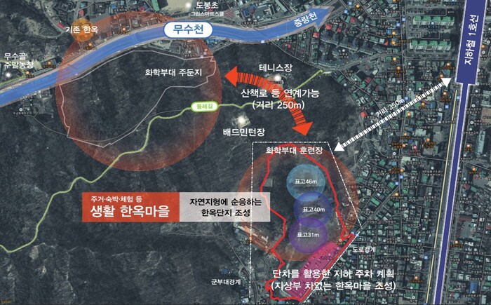 | ▲ 도봉동 산 96-4번지 일대(도봉동 화학부대 이전부지) 한옥마을 구상도 (사진=도봉구청 제공) |